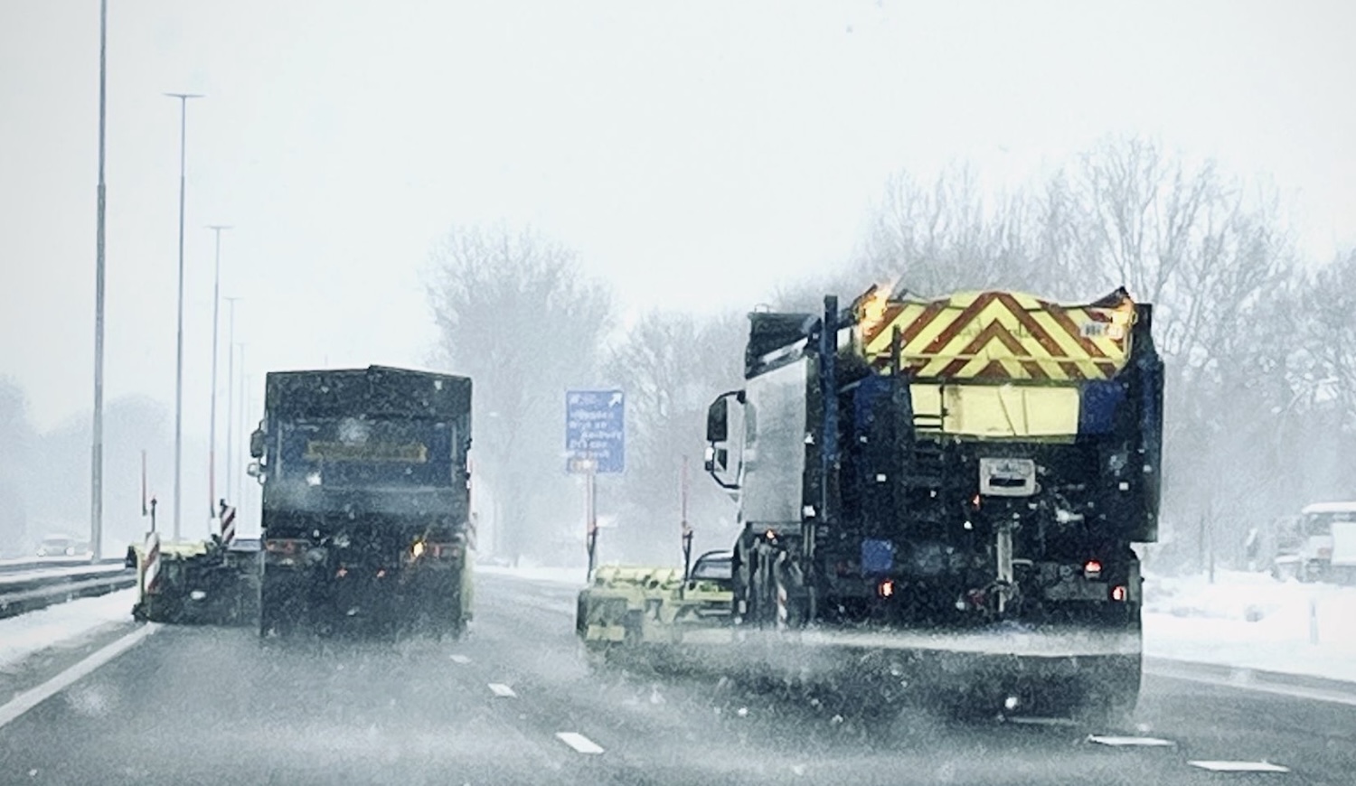 Tegelijkertijd trekt de wind flink aan. Die wind blaast sneeuw over de wegen en beperkt het zicht aanzienlijk. Daardoor zie je minder en reageren voertuigen trager. Deze combinatie vergroot het risico op ongelukken, vooral op snelwegen, bruggen en op- en afritten.