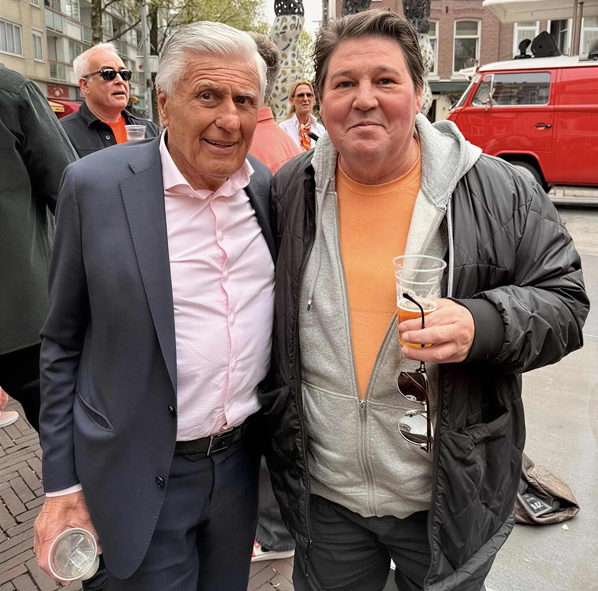 En daar, midden in de drukte, liep hij ineens Sjaak Swart tegen het lijf. De ontmoeting oogde spontaan en ongeforceerd: twee bekende gezichten die even stilstaan, poseren en vooral lijken te genieten van het moment.