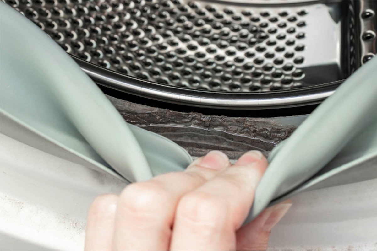 De rubberen manchet rondom de deur wordt vaak vergeten. Juist daar hopen zeepresten en vuil zich op. Dat is met het blote oog niet altijd direct zichtbaar. Toch draagt het sterk bij aan de muffe geur.