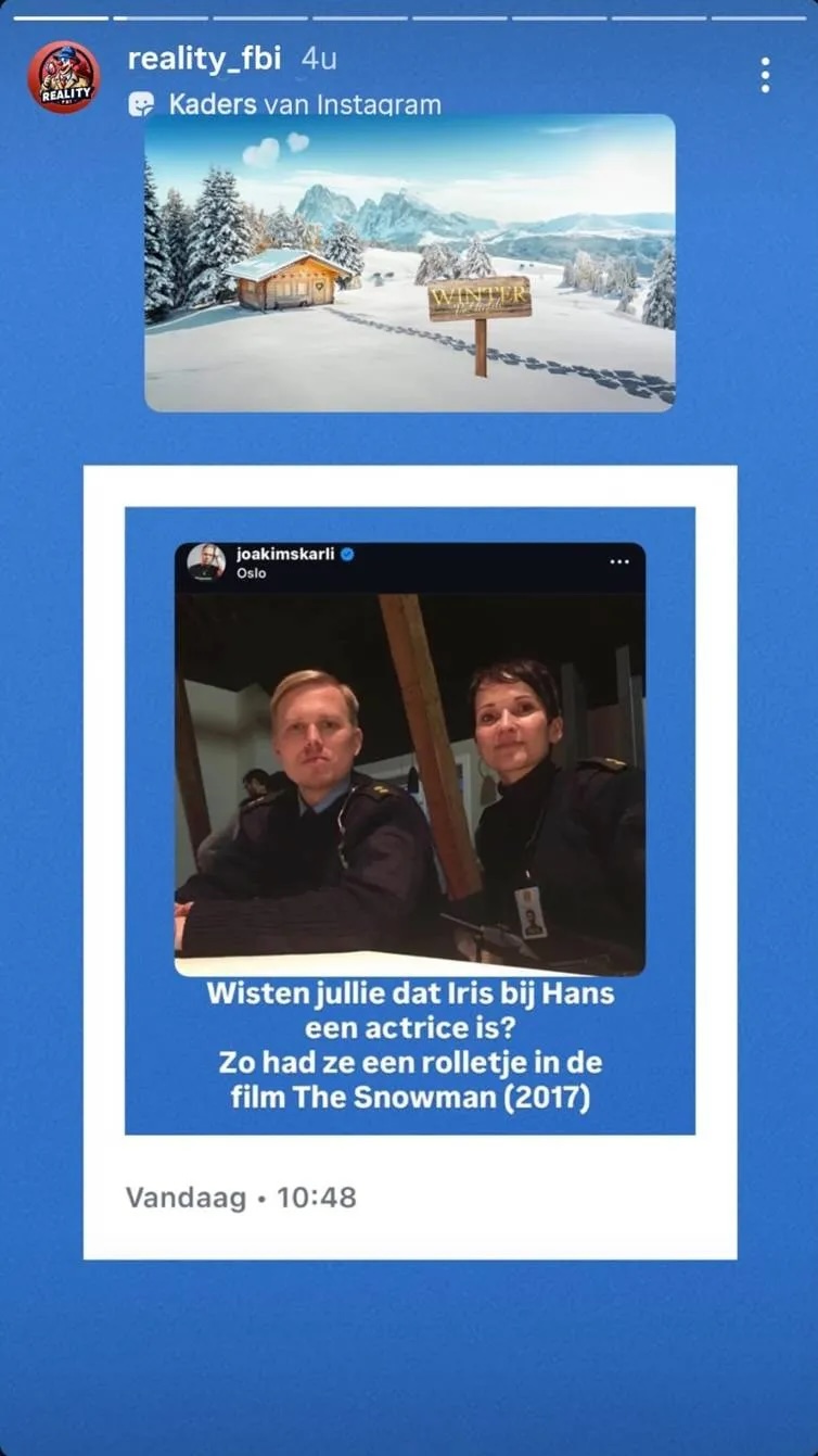 Volgens RealityFBI heeft Iris daarnaast ervaring als actrice. In 2017 speelde zij een rol in de film The Snowman. Die productie trok internationaal aandacht en kende een grote cast. De onthulling zorgde voor gefronste wenkbrauwen bij trouwe kijkers. Toch bleef het bij een vaststelling zonder beschuldigende toon. Verdere details over haar rol werden niet gedeeld.